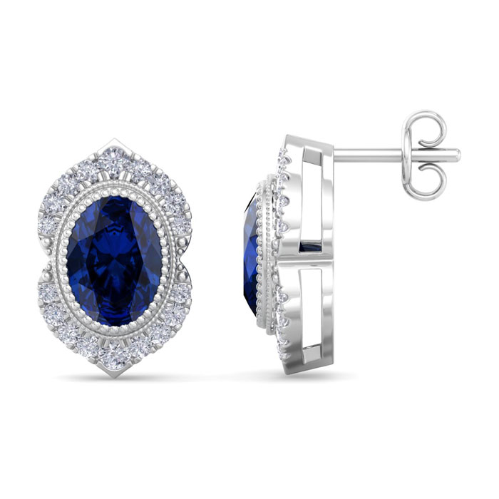 2 1/2 Carat Oval Shape Sapphire and Diamond Earrings In 14K White Gold