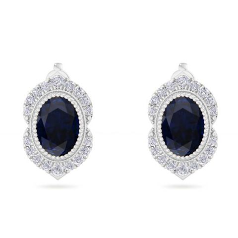 2 1/2 Carat Oval Shape Sapphire and Diamond Earrings In 14K White Gold