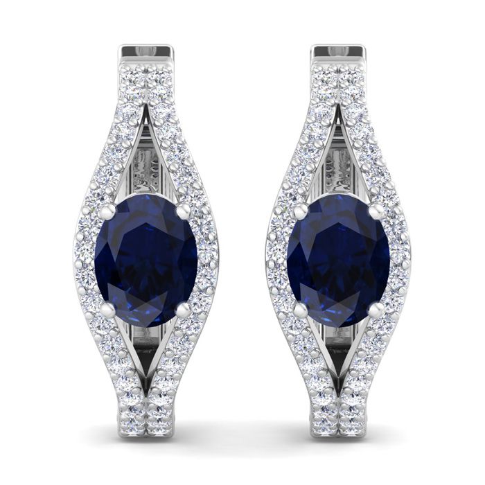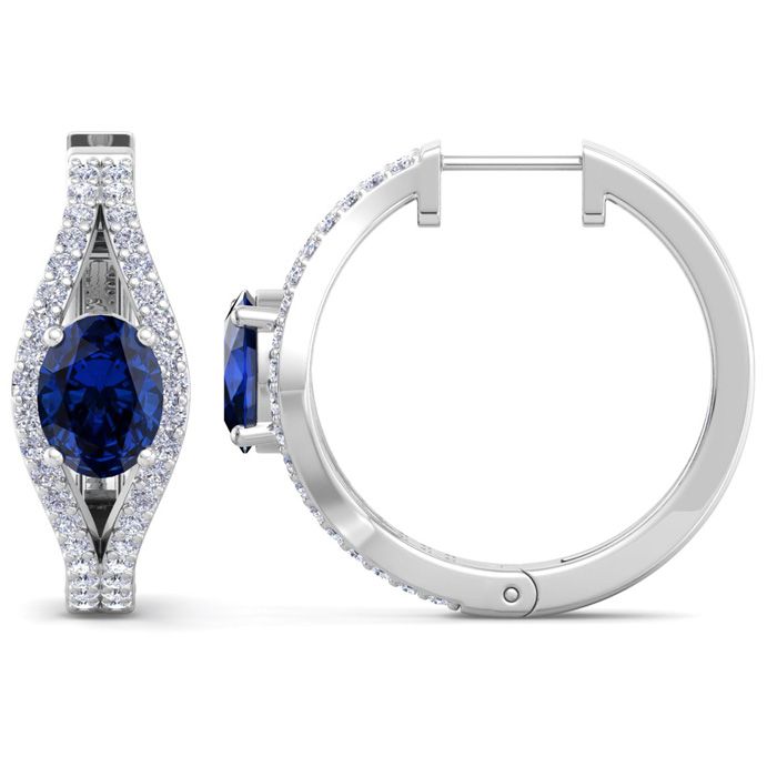 2 1/4 Carat Sapphire and Lab Grown Diamond Hoop Earrings In 14 Karat White Gold