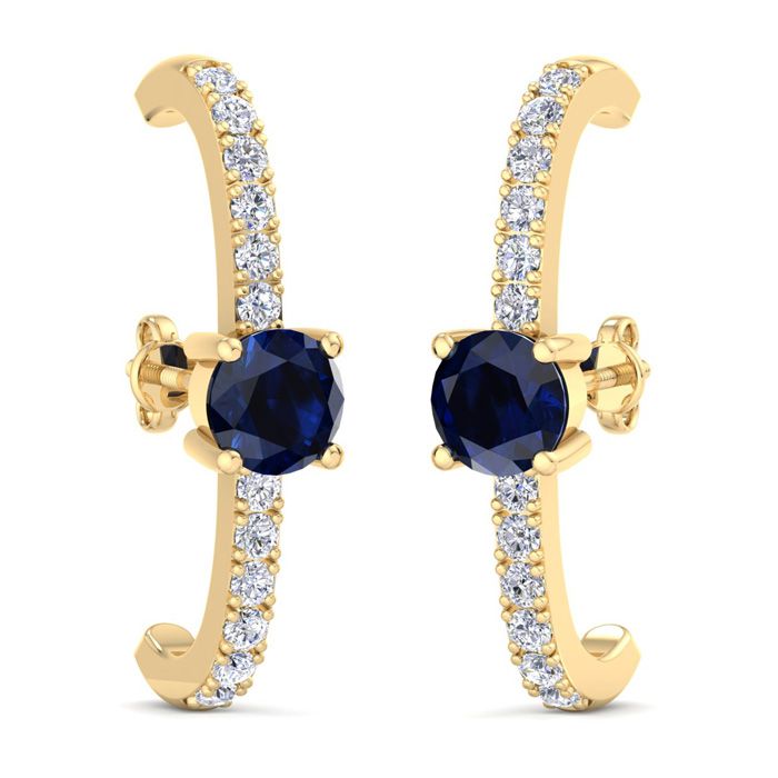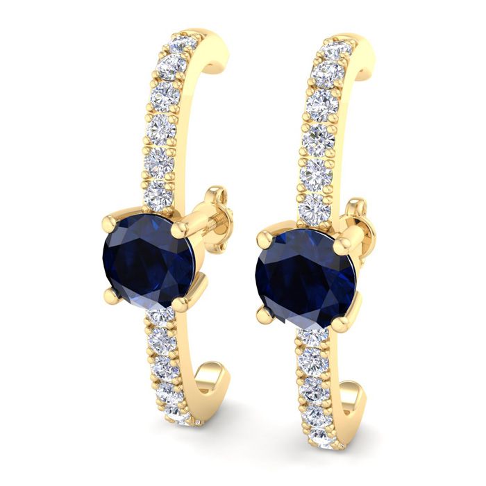 2 Carat Sapphire and Lab Grown Diamond Hoop Earrings In 14 Karat Yellow Gold, 1 Inch - Round