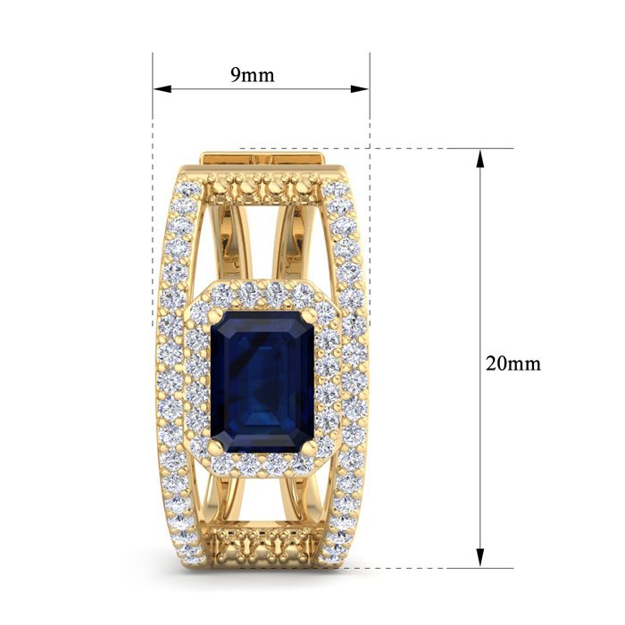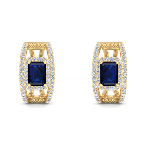 3 Carat Sapphire and Lab Grown Diamond Hoop Earrings In 14 Karat Yellow Gold