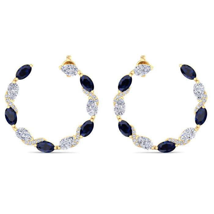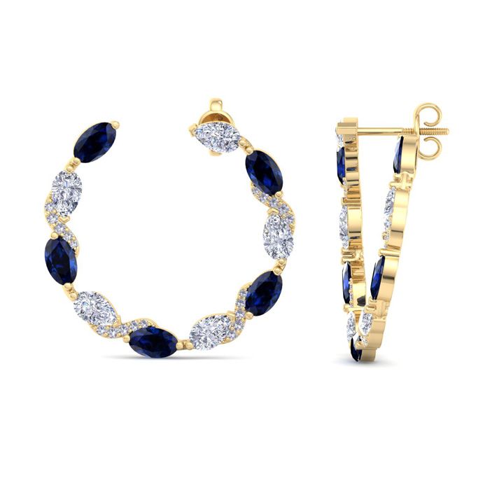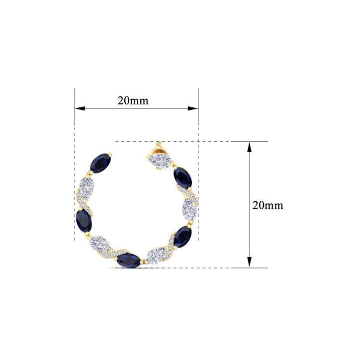 4 3/4 Carat Sapphire and Lab Grown Diamond Hoop Earrings In 14 Karat Yellow Gold, 3/4 Inch
