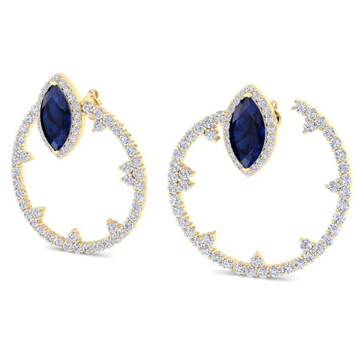 6 Carat Sapphire and Lab Grown Diamond Hoop Earrings In 14 Karat Yellow Gold, 1 1/3 Inches
