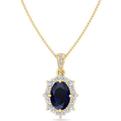 1 3/4 Carat Oval Shape Sapphire and Diamond Necklace In 14K Yellow Gold