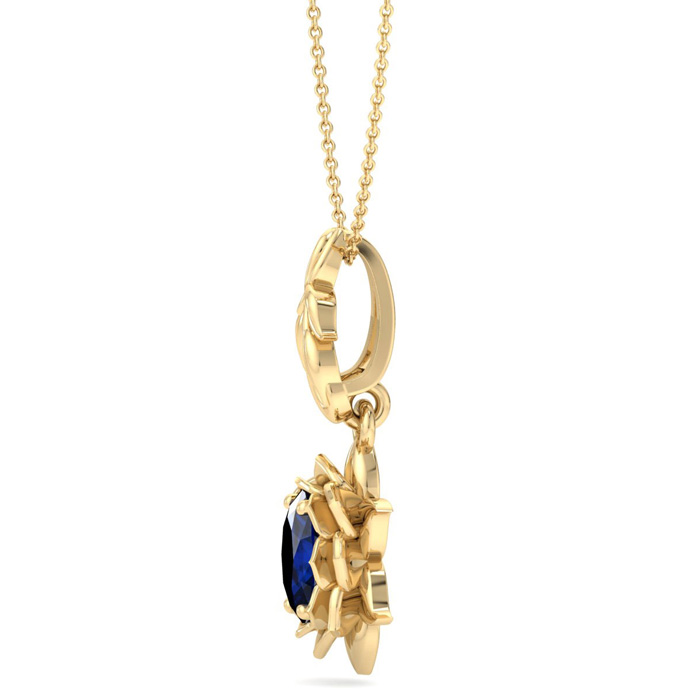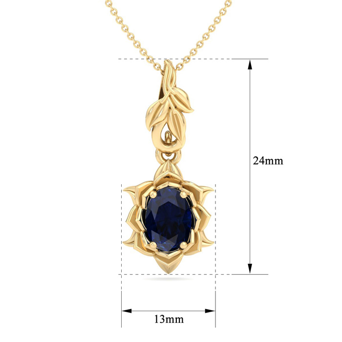 1 Carat Oval Shape Sapphire Ornate Necklace In 14K Yellow Gold