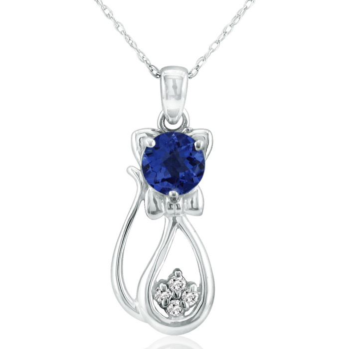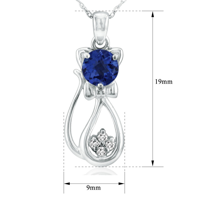 1 Carat Sapphire and Diamond Cat Necklace In Sterling Silver With 18 Inch Chain