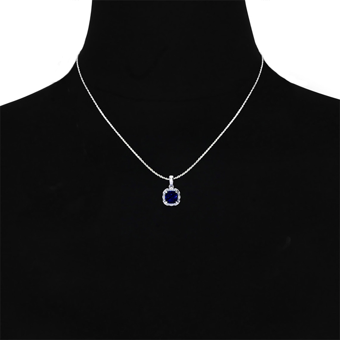 2 Carat Cushion Cut Sapphire and Diamond Necklace In Sterling Silver With 18 Inch Chain