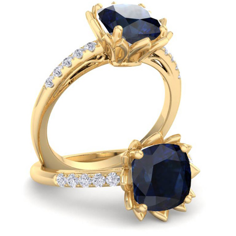 1 1/2 Carat Cushion Cut Sapphire and Diamond Ring In 14K Yellow Gold