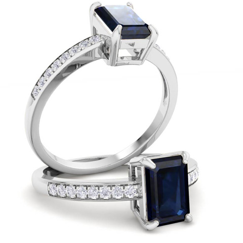 1 1/4 Carat Emerald Cut Sapphire and Diamond Ring In 14K White Gold