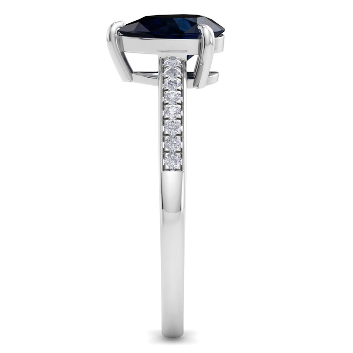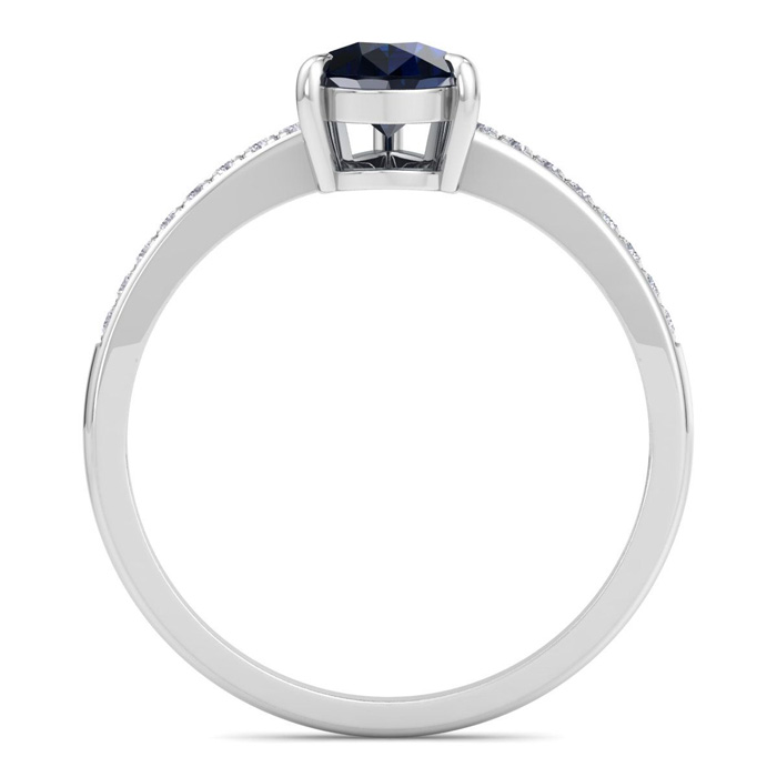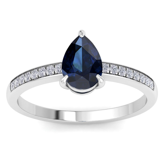 Retrograde Birthstones™ 1 1/4 Carat Pear Shape Sapphire and Diamond Ring In 14K White Gold