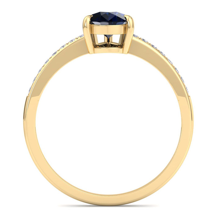 1 1/4 Carat Pear Shape Sapphire and Diamond Ring In 14K Yellow Gold