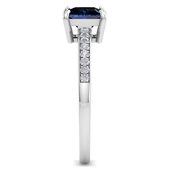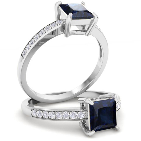 1 1/4 Carat Princess Cut Sapphire and Diamond Ring In 14K White Gold