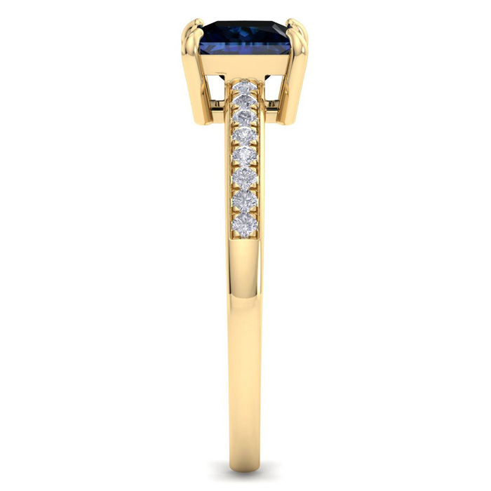 1 1/4 Carat Princess Cut Sapphire and Diamond Ring In 14K Yellow Gold