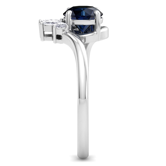 1 1/4 Carat Sapphire and Marquise Crown Halo Diamond Ring In 14K White Gold