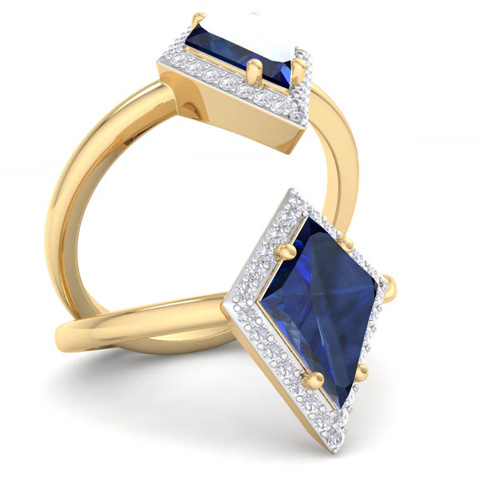 1 3/4 Carat Kite Shape Sapphire and Diamond Ring In 14K Yellow Gold