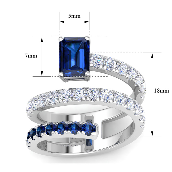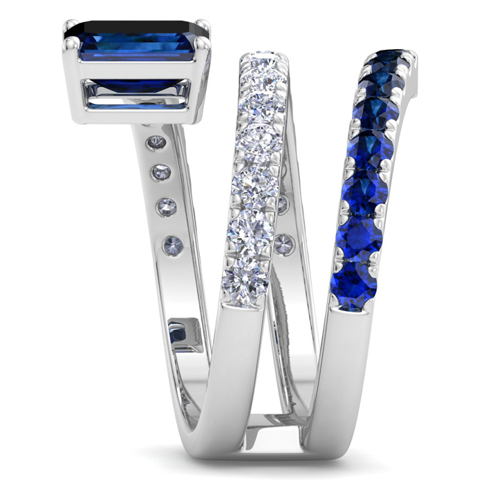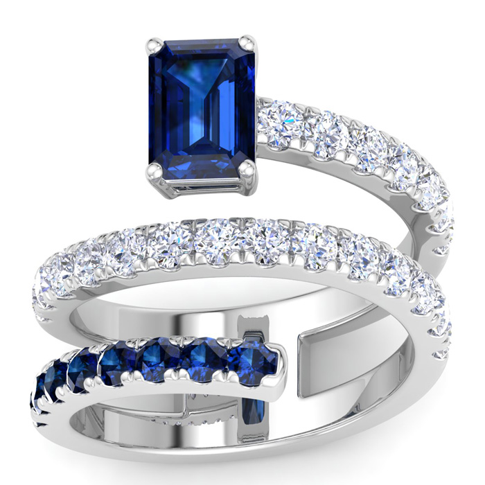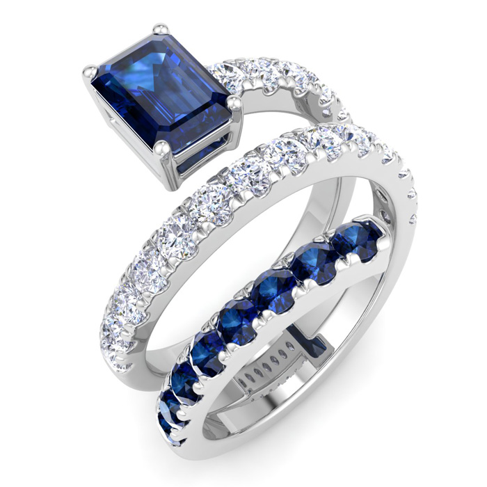 1 3/4 Carat Lab Grown Diamond and Sapphire Wrap Ring In 14 Karat White Gold