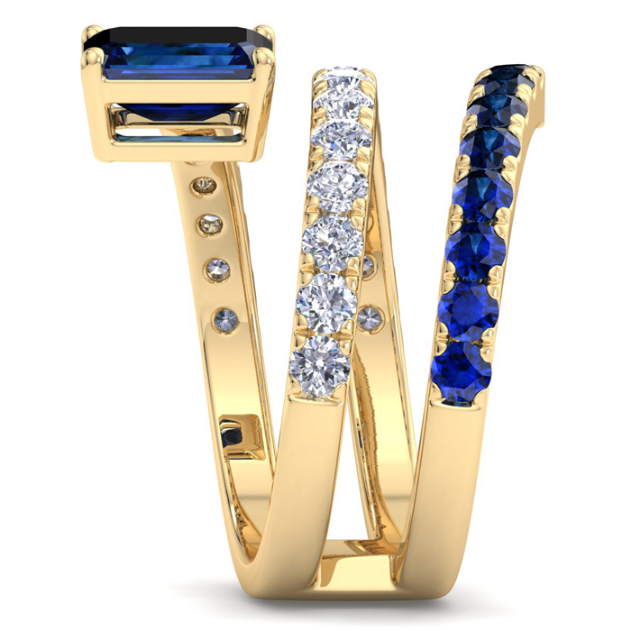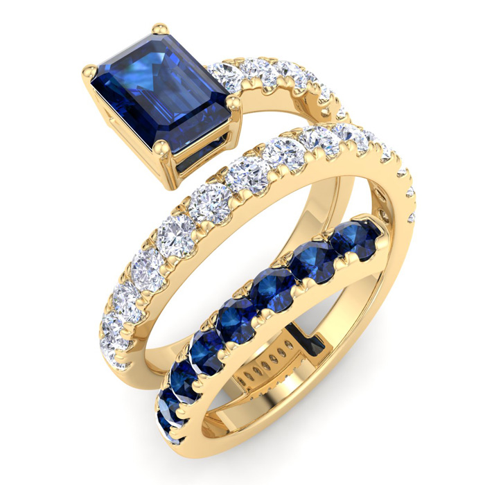 1 3/4 Carat Lab Grown Diamond and Sapphire Wrap Ring In 14 Karat Yellow Gold