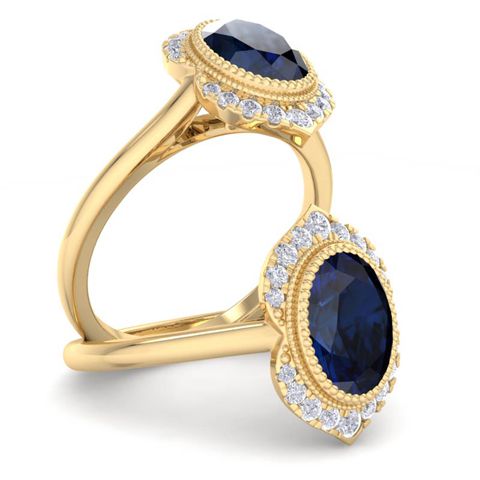 1 3/4 Carat Oval Shape Sapphire and Diamond Ring In 14K Yellow Gold