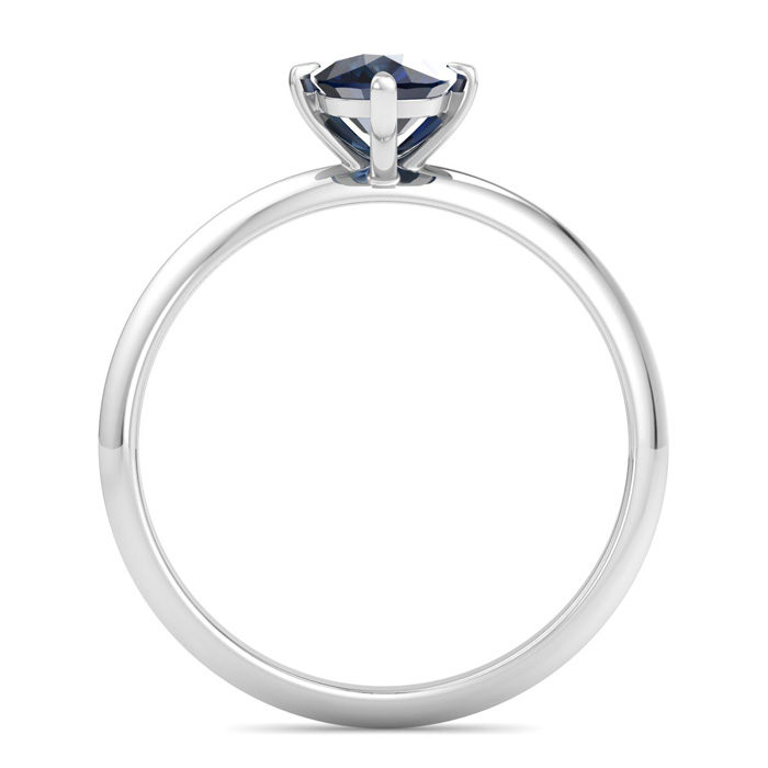 This gemstone ring features one 7x5mm antique cushion shape sapphire gemstone weighing approximately 1 carat. This ring is in 14 karat white gold.