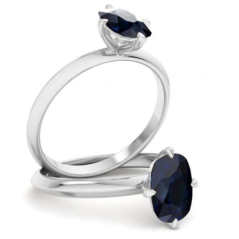 1 Carat Antique Cushion Shape Sapphire Ring In 14K White Gold