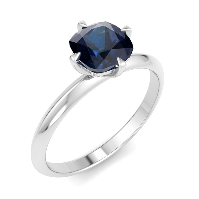 This gemstone ring features one 6mm cushion shape sapphire gemstone weighing approximately 1 carat. This ring is in 14 karat white gold.