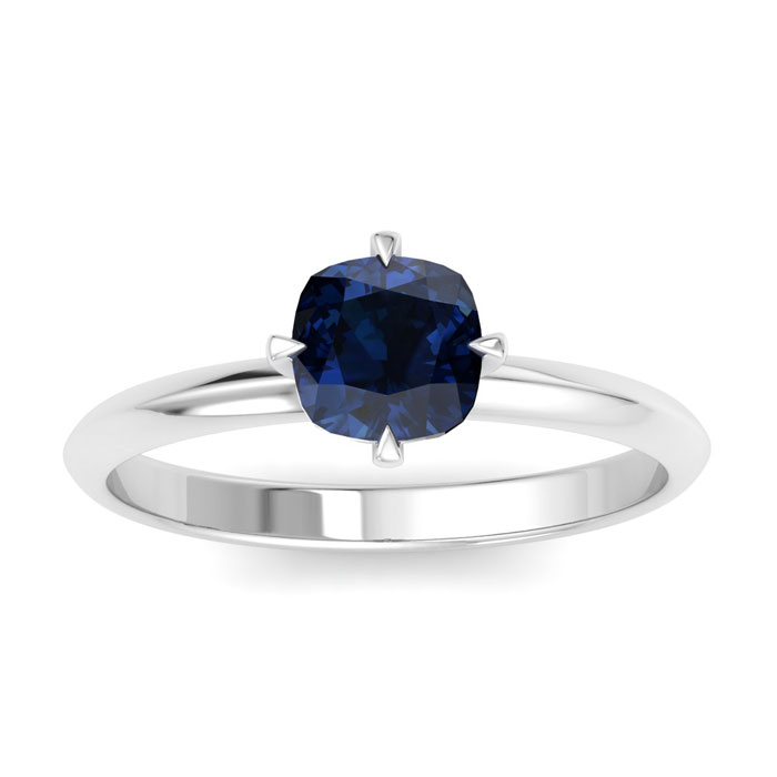 Retrograde Birthstones™ 1 Carat Cushion Shape Sapphire Ring In 14K White Gold