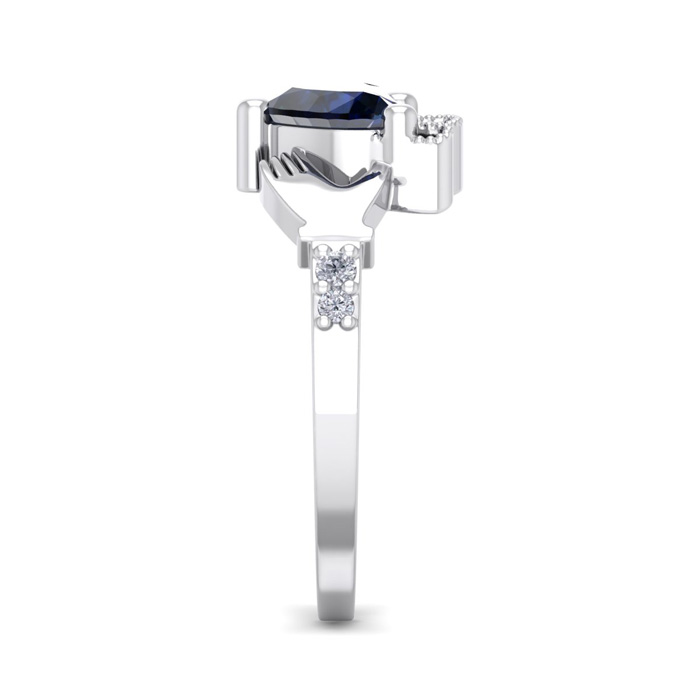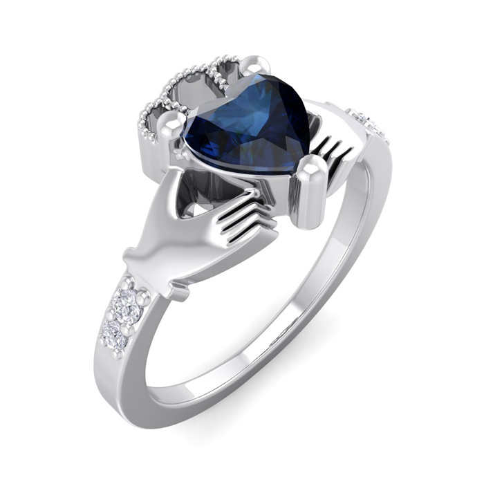 1 Carat Heart Shape Created Sapphire and Diamond Claddagh Ring In Sterling Silver