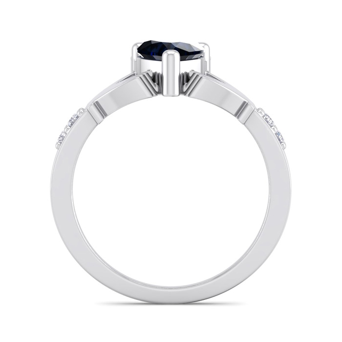 This sapphire ring features one 6x6mm heart shape created sapphire gemstone. It is surrounded by 4 sparkling diamonds totaling 0.06 carats in I-J color, I1-I2 clarity. Total carat weight is approximately 1.06 carats. This ring is in sterling silver.