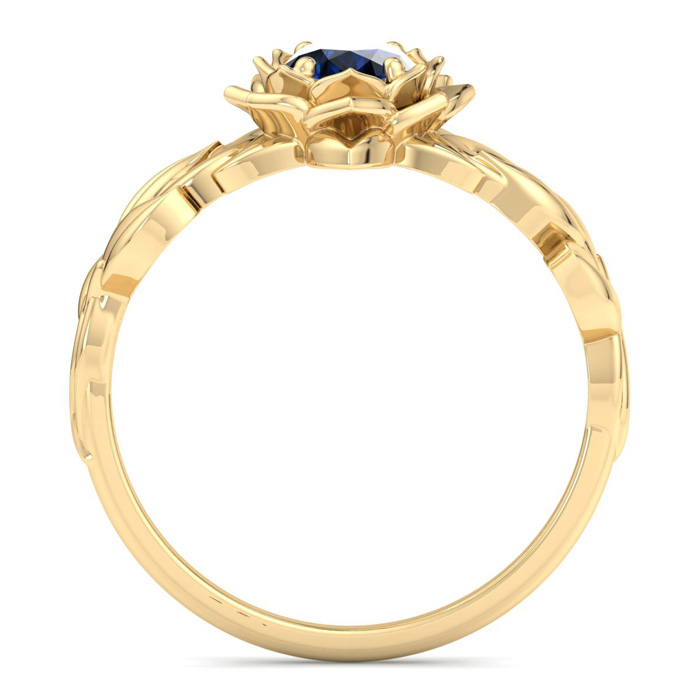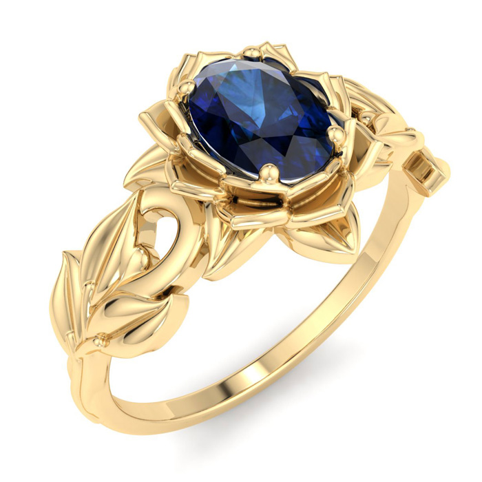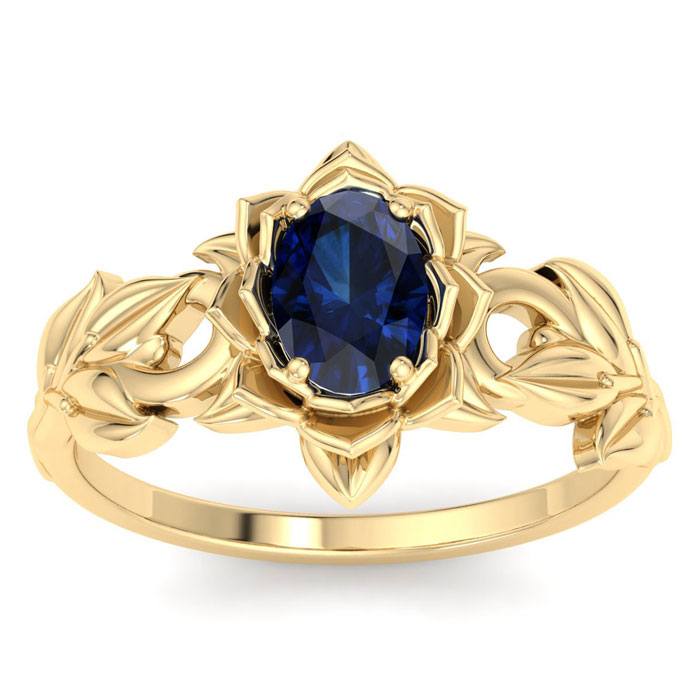 Retrograde Birthstones™ 1 Carat Oval Shape Sapphire Ornate Ring In 14K Yellow Gold