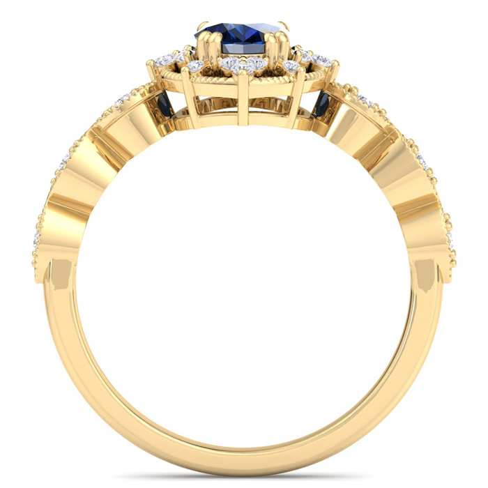 Retrograde Birthstones™ 1 Carat Sapphire and Halo Diamond Ring In 14K Yellow Gold