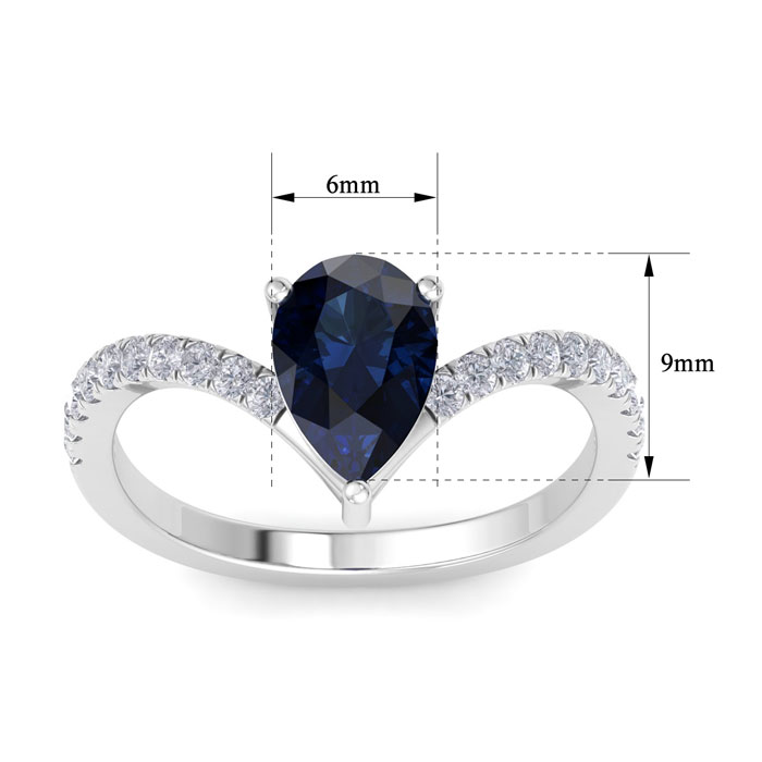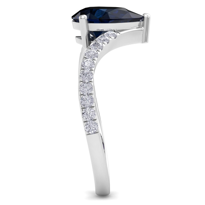 Retrograde Birthstones™ 2 Carat Pear Shape Sapphire and Diamond Ring In 14K White Gold