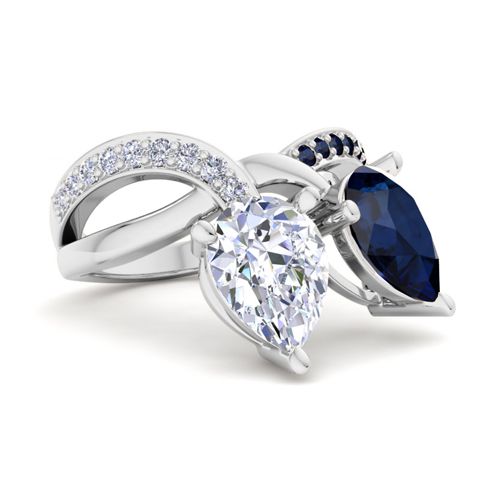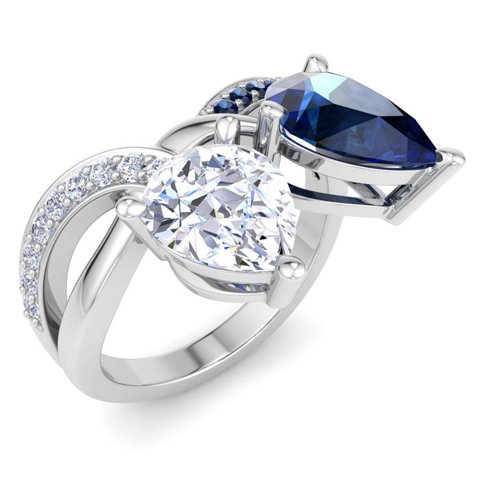 3 1/2 Carat Sapphire and Lab Grown Diamond Two Stone Engagement Ring In 14 Karat White Gold, Pear