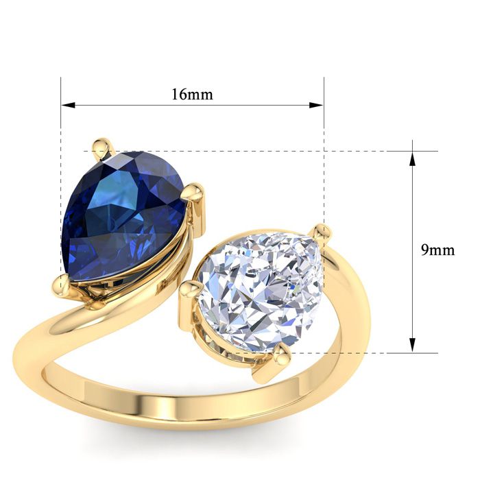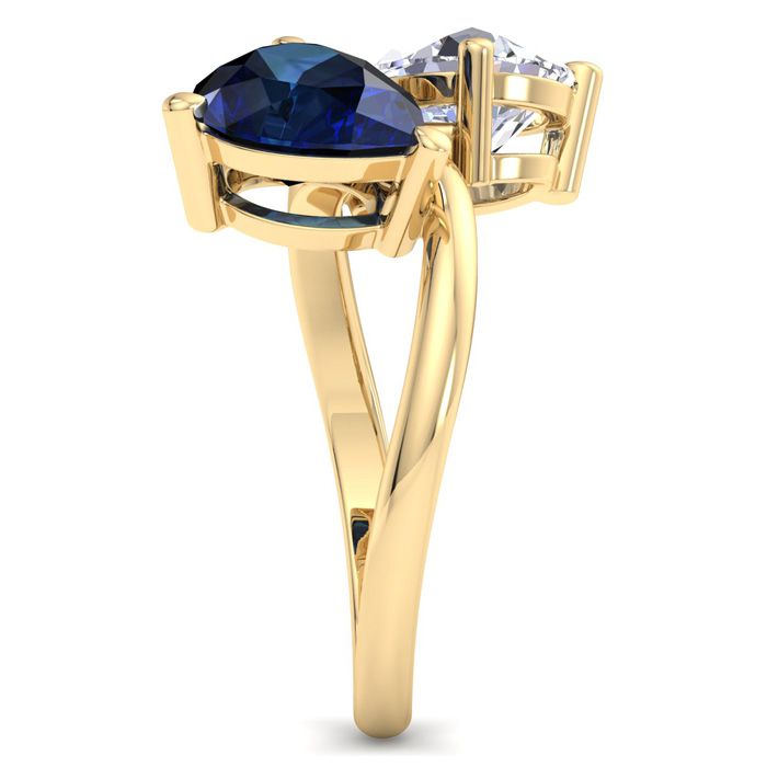 3 1/2 Carat Sapphire and Lab Grown Diamond Two Stone Engagement Ring In 14 Karat Yellow Gold, Pear-Pear