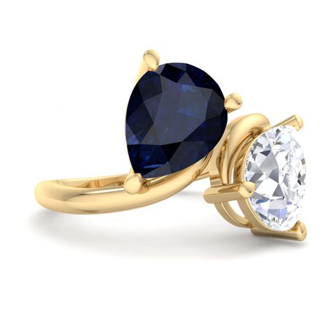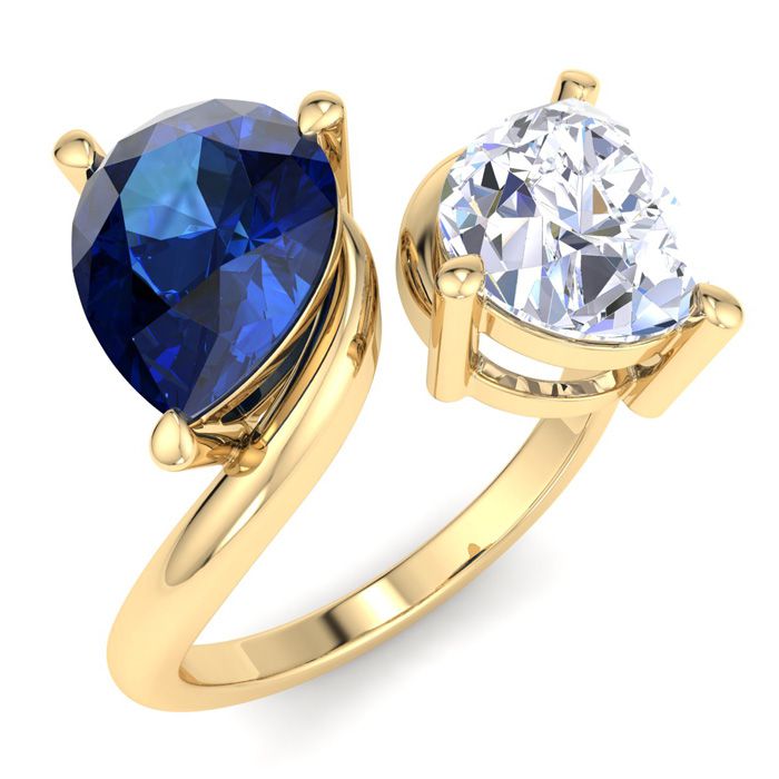 3 1/2 Carat Sapphire and Lab Grown Diamond Two Stone Engagement Ring In 14 Karat Yellow Gold, Pear-Pear