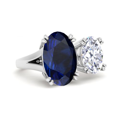 5 Carat Sapphire and Lab Grown Diamond Two Stone Engagement Ring In 14 Karat White Gold, Oval