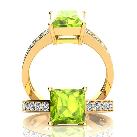 Square Step Cut 1 1/2ct Peridot and Diamond Ring in 14K Yellow Gold