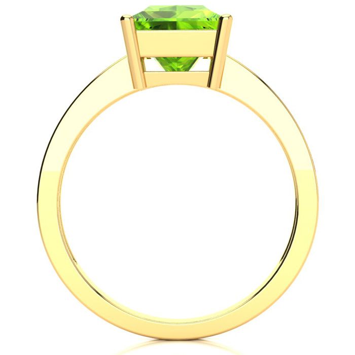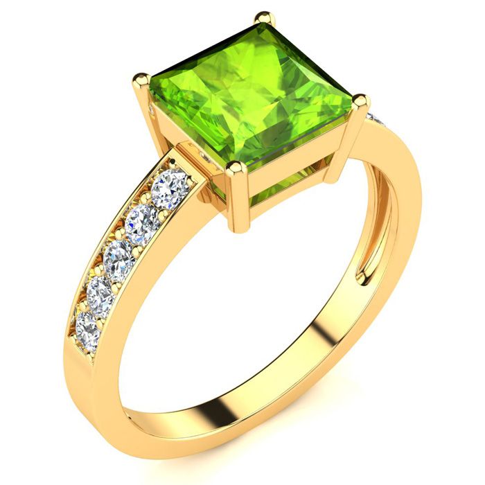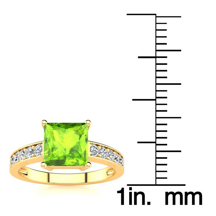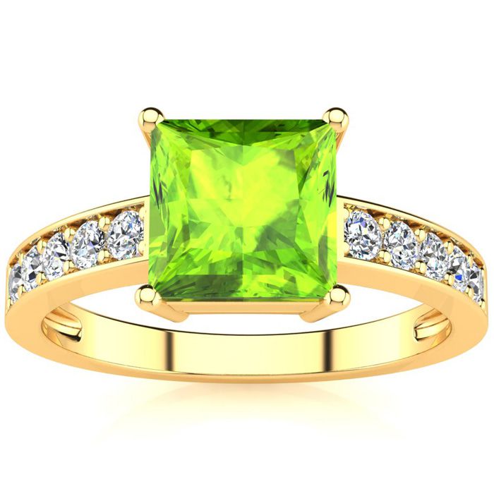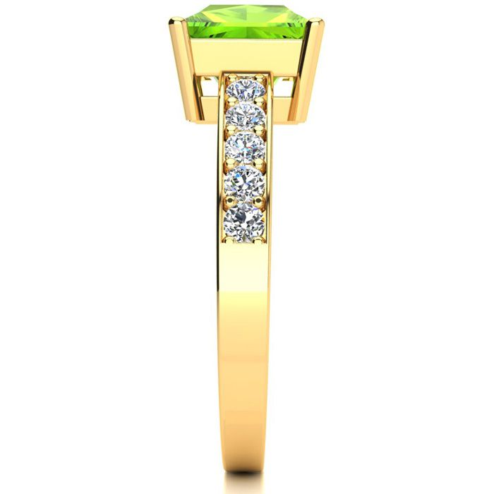 Square Step Cut 1 1/2ct Peridot and Diamond Ring in 14K Yellow Gold
