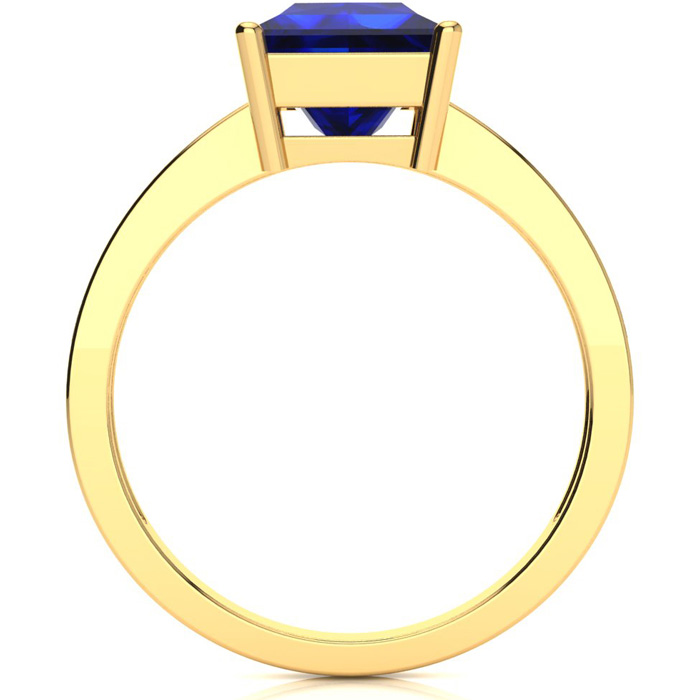 This stunning gemstone and diamond ring features one 7x7mm square step cut created sapphire gemstone at 1.77 carats. It is surrounded by 10 sparkling diamonds in I-J color, I1-I2 clarity at 0.10 carats. Total gem weight is 1.87 carats. This ring is crafted in 14 karat yellow gold.
