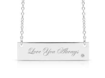 Tiger - This sleek and simple Sterling Silver Bar Necklace with Diamond Accent would look really nice around my wife's neck after I get it engraved.