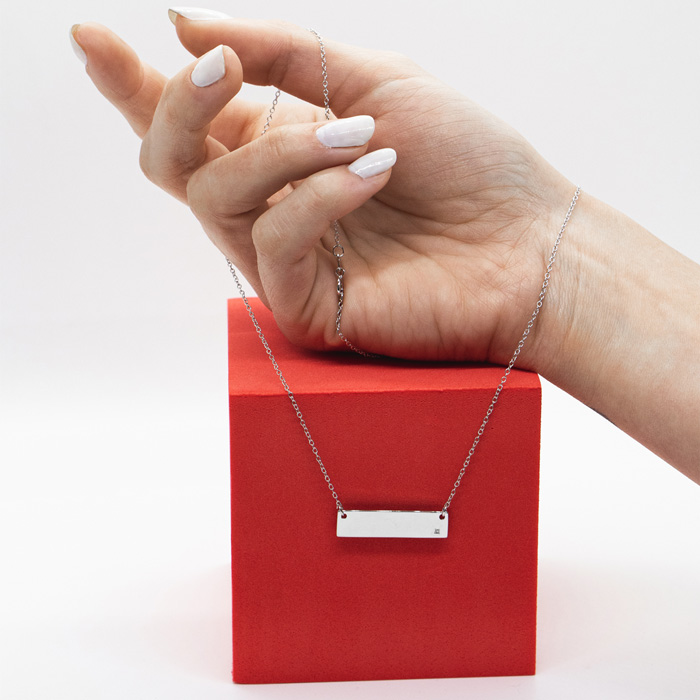Tiger - This sleek and simple Sterling Silver Bar Necklace with Diamond Accent would look really nice around my wife's neck after I get it engraved.