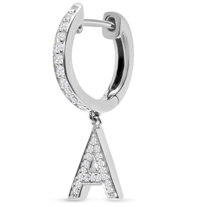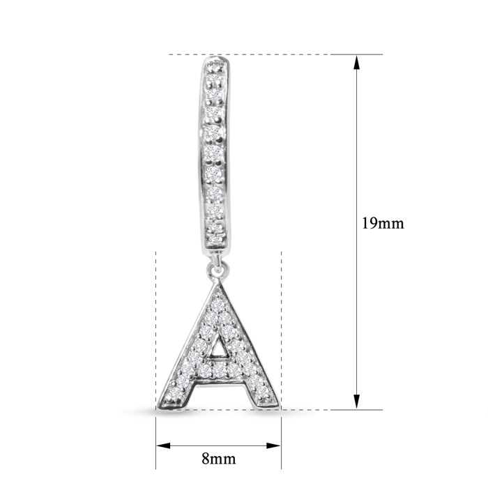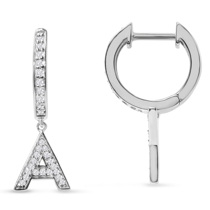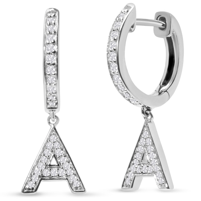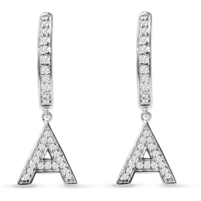 Sterling Silver Letter A Initial Earrings, Diamond Drop Earrings – Personalized Initial Jewelry