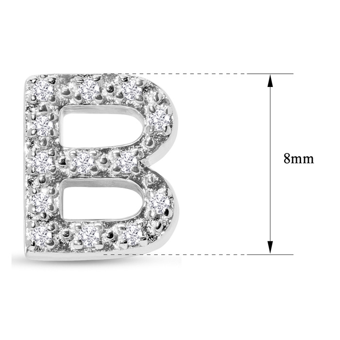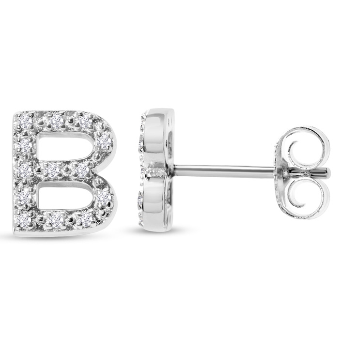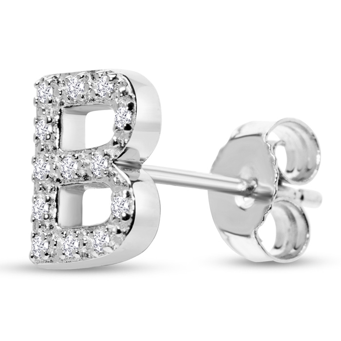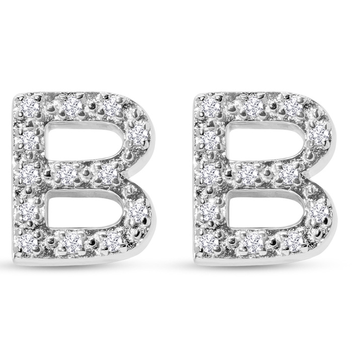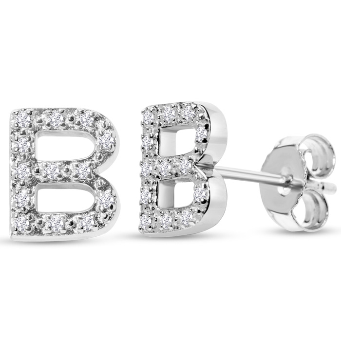 1/10 Carat Natural Diamond Letter B Initial Earrings In Solid Sterling Silver