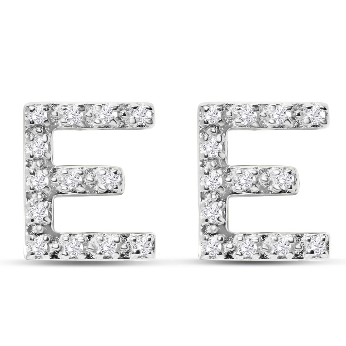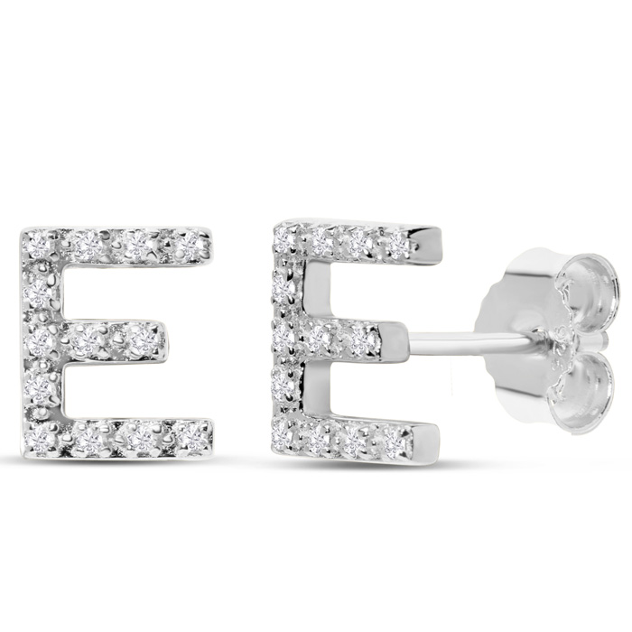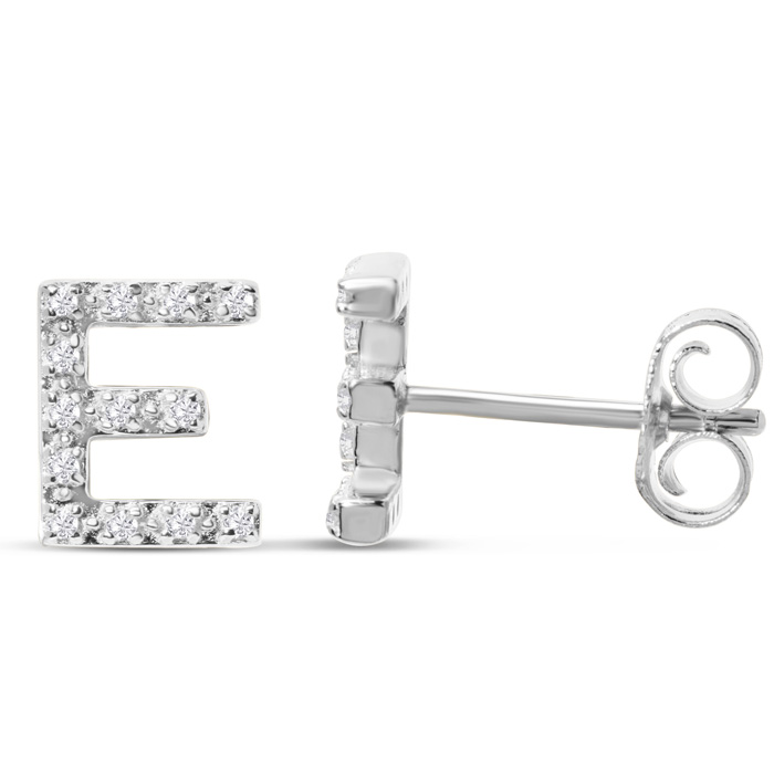 1/10 Carat Natural Diamond Letter E Initial Earrings In Solid Sterling Silver