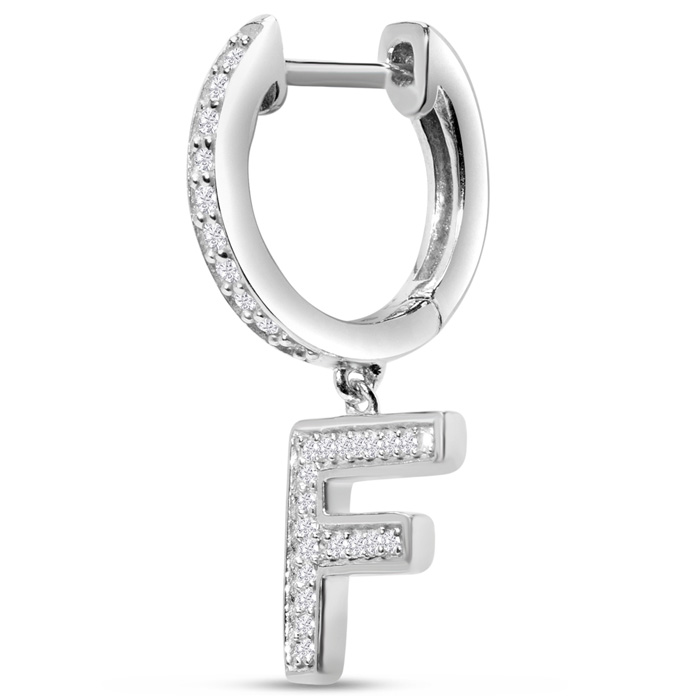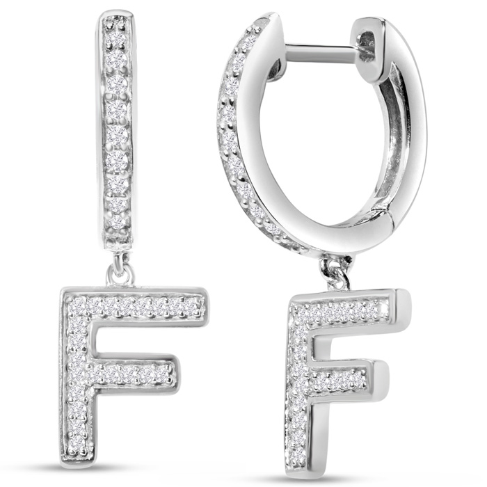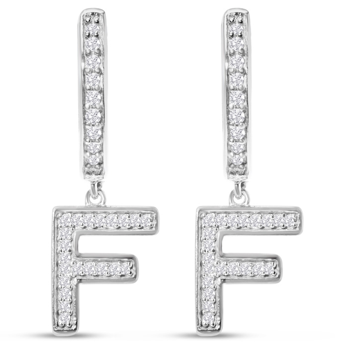 Sterling Silver Letter F Initial Earrings, Diamond Drop Earrings – Personalized Initial Jewelry