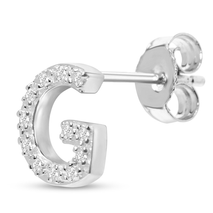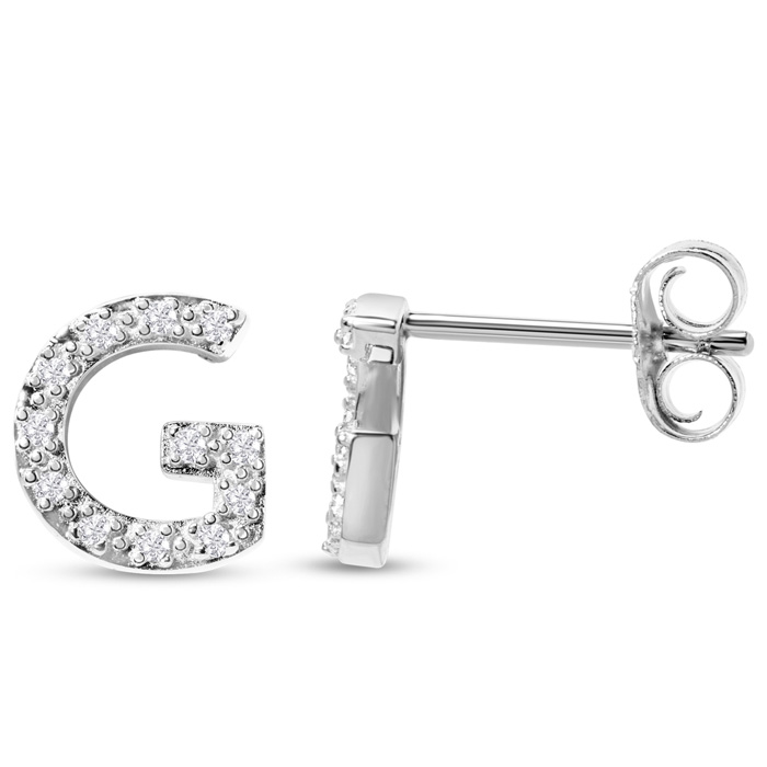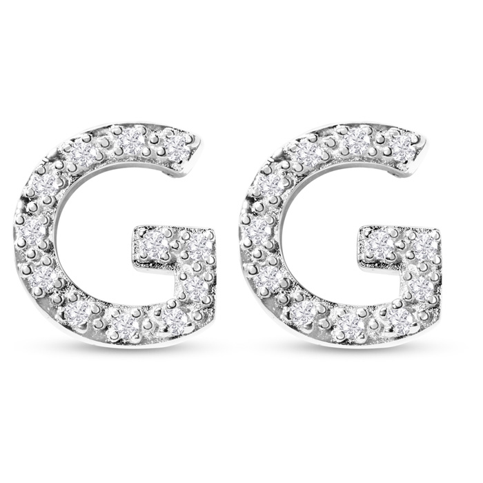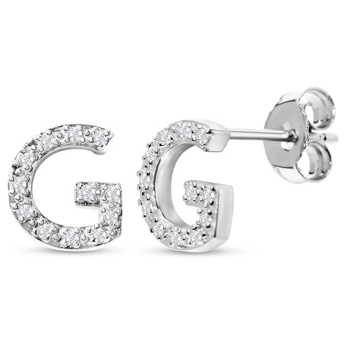 1/10 Carat Natural Diamond Letter G Initial Earrings In Solid Sterling Silver