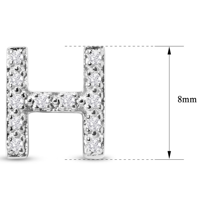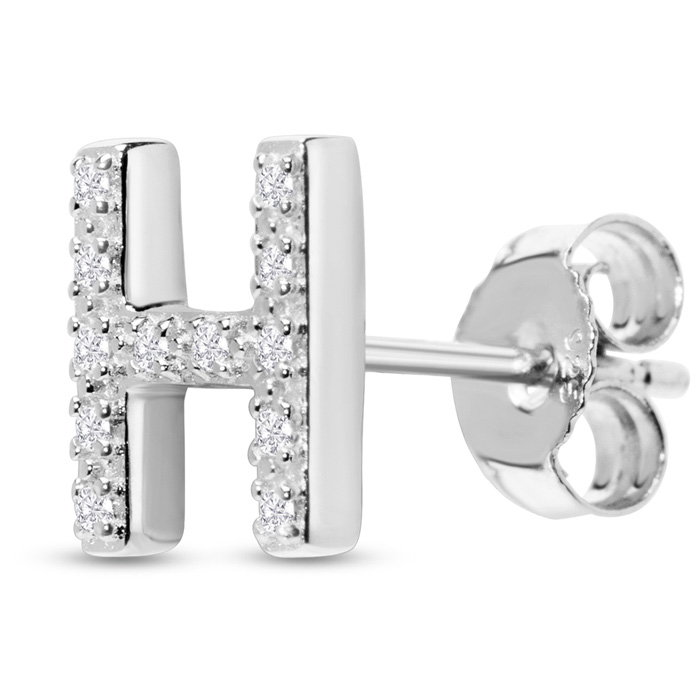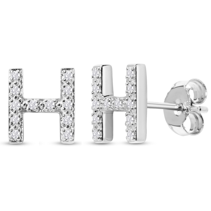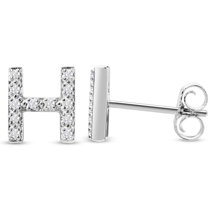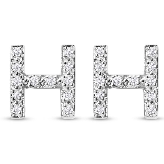 1/10 Carat Natural Diamond Letter H Initial Earrings In Solid Sterling Silver