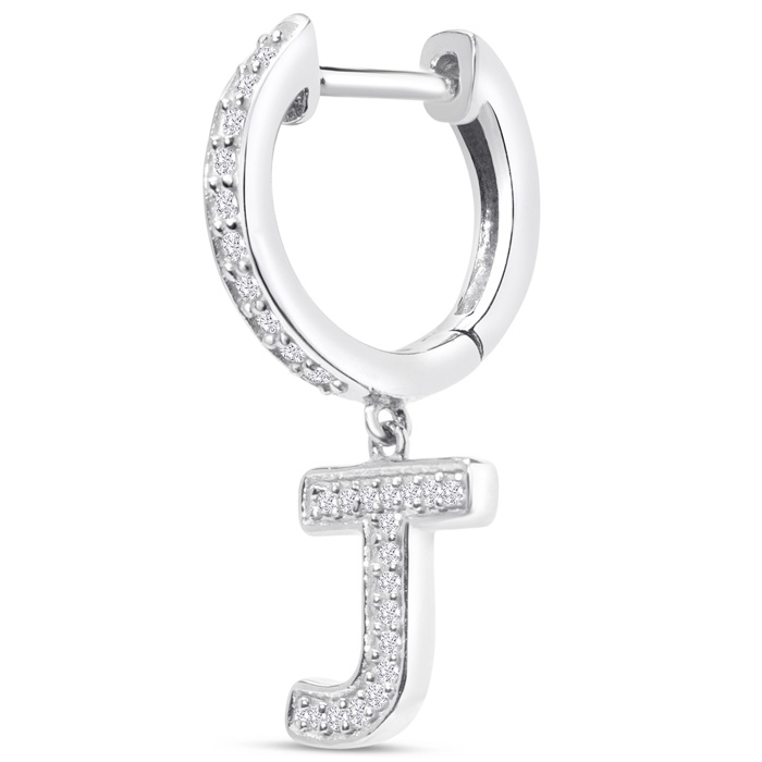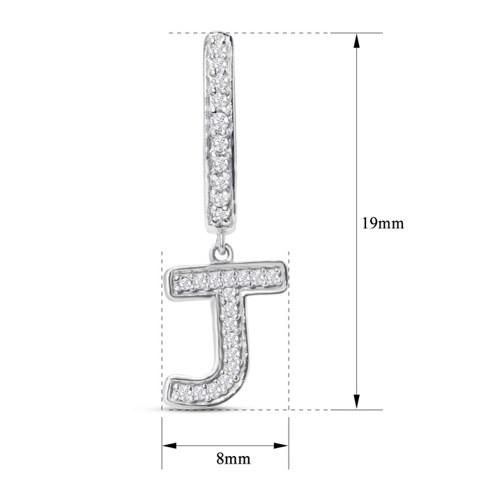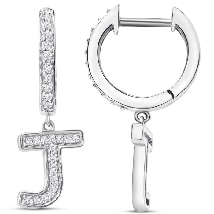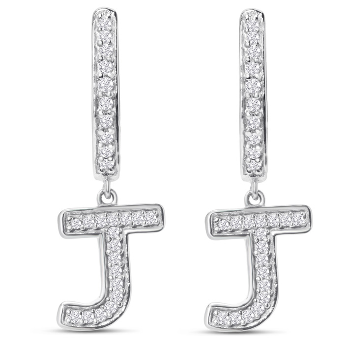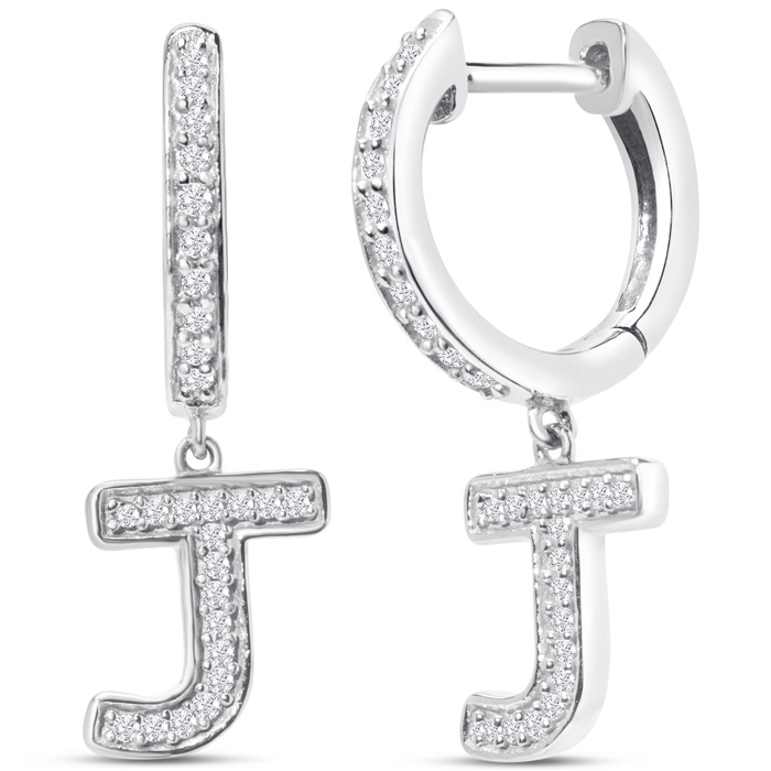 Sterling Silver Letter J Initial Earrings, Diamond Drop Earrings – Personalized Initial Jewelry