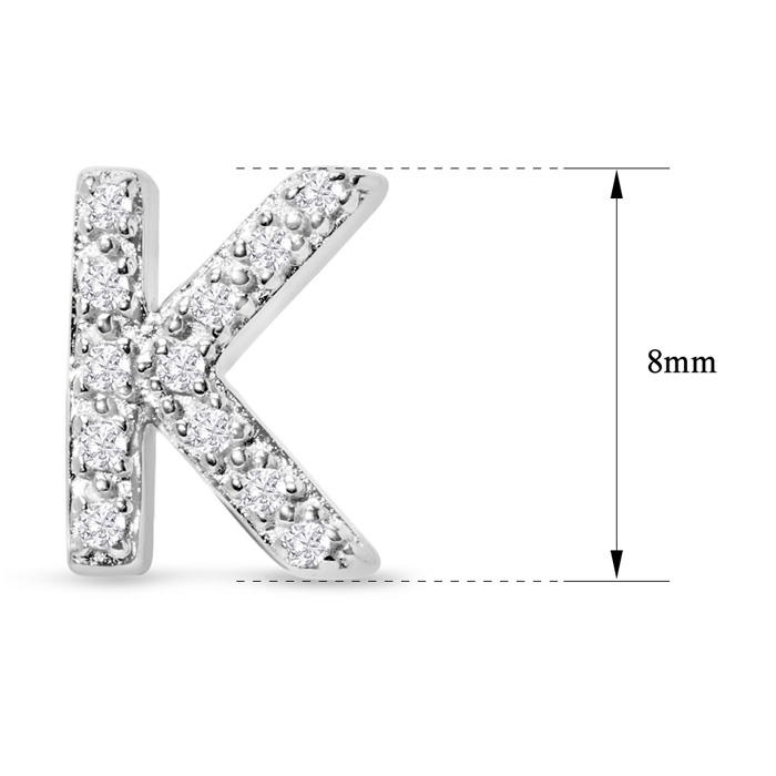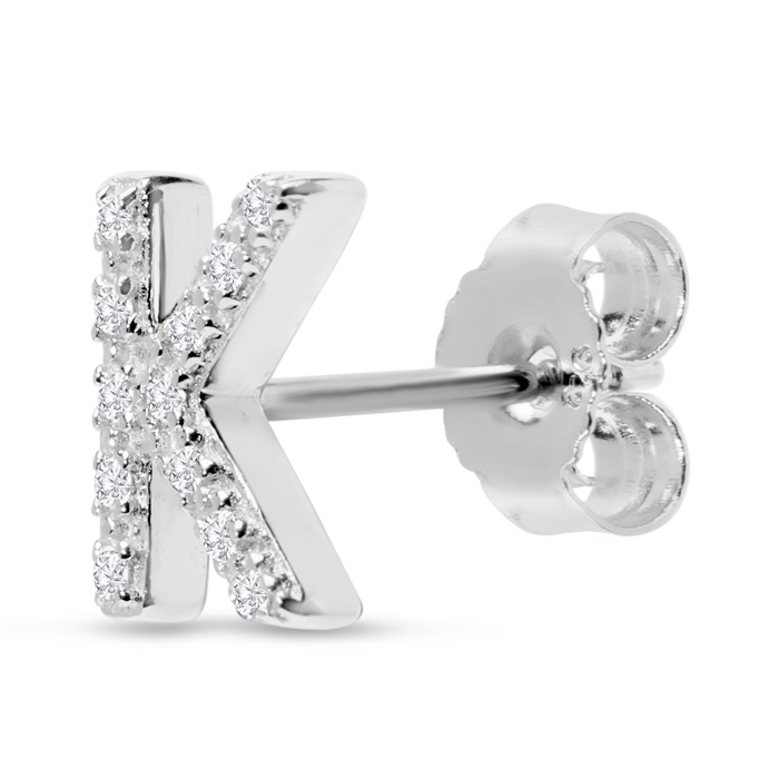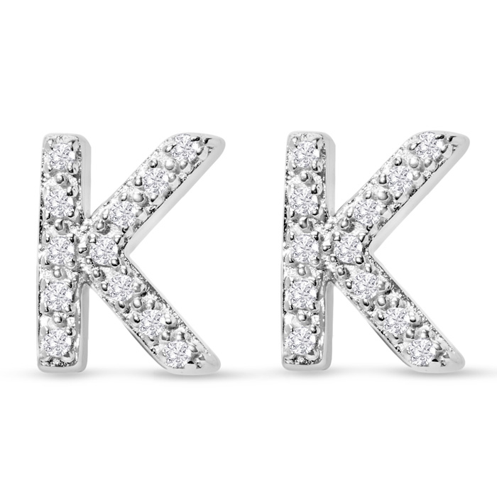1/10 Carat Natural Diamond Letter K Initial Earrings In Solid Sterling Silver