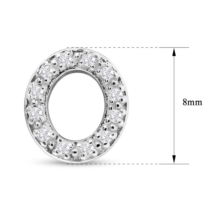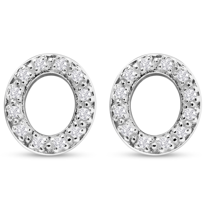 1/10 Carat Natural Diamond Letter O Initial Earrings In Solid Sterling Silver