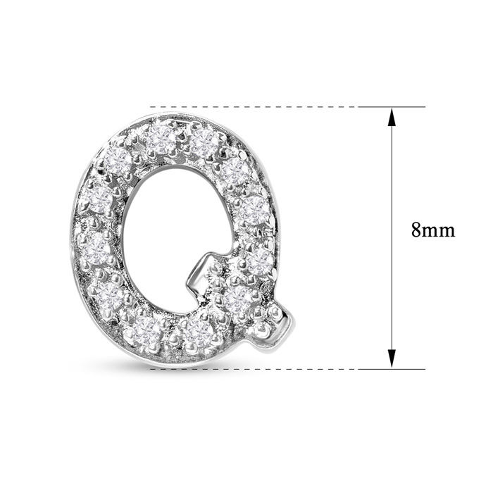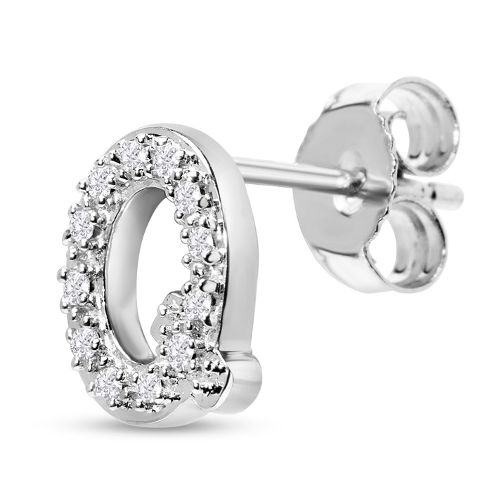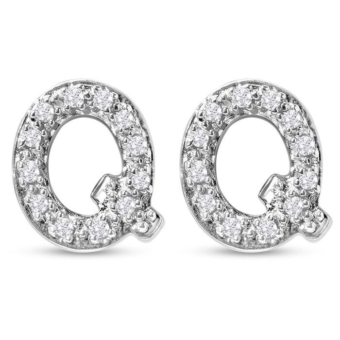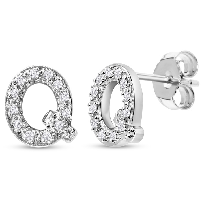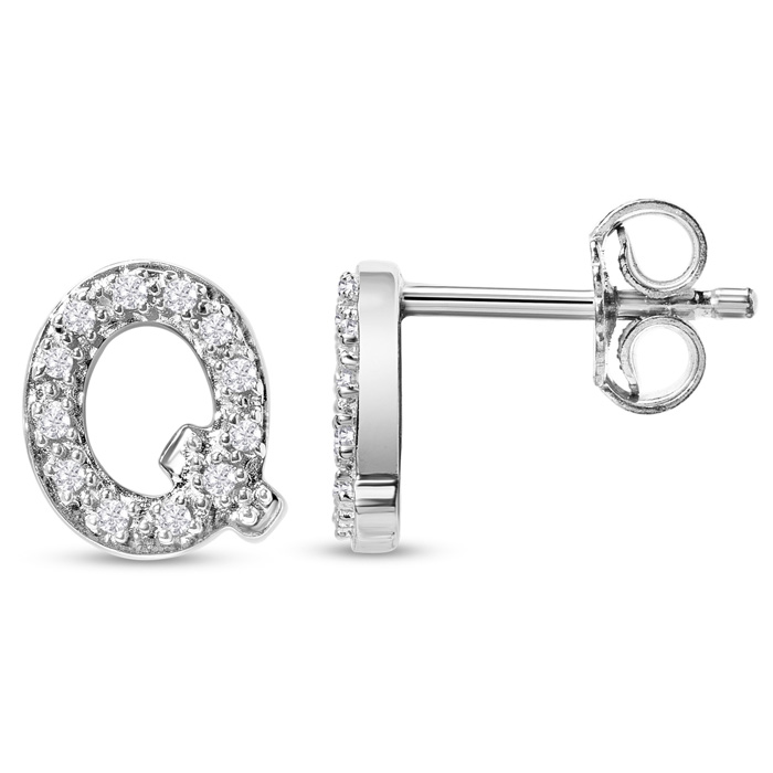 1/10 Carat Natural Diamond Letter Q Initial Earrings In Solid Sterling Silver